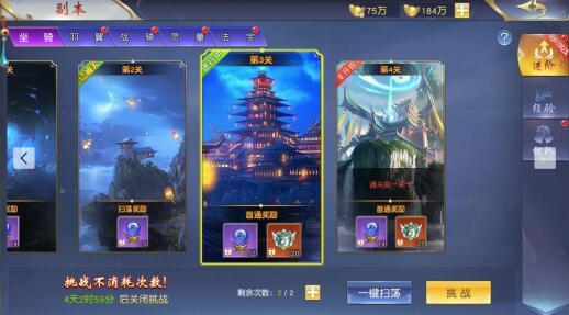 开服5天之后,副本挑战关闭,玩家只能通过扫荡完成每日的玩法。