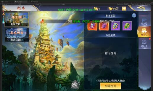 玩家可以组队挑战的副本,攀天殿是爬塔挑战副本,苍龙秘宝是守护防御型副本,通关副本可以获得各种奖励,并且可以在界面额外花费元宝领取2次奖励。