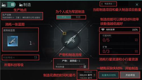 首先如上图的制造界面所示,要收集页面上的所有物资,点击开启项目后才能开始自动生产舰船。所有材料均可从吉他贸易中心花费星币购买,或者通过如下途径获取。