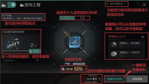 1、舰船蓝图:用科技球和残骸逆向出舰船蓝图,可在市场中购买原材料自己造,也可以直接购买蓝图。