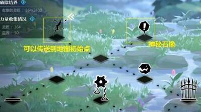 左边地图的左下角画面(拿到一个石像),这里的空间裂缝都可以传送到地图初始点的,就不用再解一遍机关出去了。