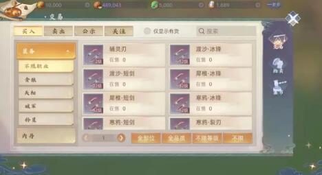 行走江湖,哪能没有一身好装备呢?在交易市场里首先映入眼帘的便是各色极品装备。玩家不用担心,想要的装备是否能装上,交易市场里特别人性化的已经将装备按照职业划分好了。不仅如此,还可以通过底下的部位、品质、等级筛选快速找到心仪的装备。玩家自己拥有了极品装备后,同样不能落下我们一起并肩作战的元兽。在交易市场里还有着可以培养元兽的内丹、化相果等等。