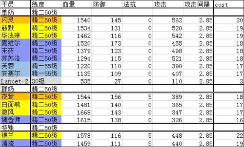 1、先锋干员:攻击型、防御型、杀回型、爆费型