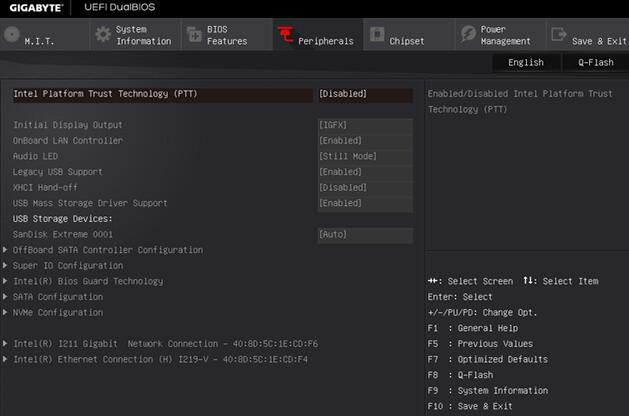 4、peripherals选项中,这是BIOS特色功能,我们可以在其中调整系统优先启动顺序,以及针对某些系统的特别功能和安全选项等。