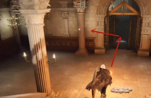 走到这里别跳下去,右边雕像这里有个道具,还有一个拉杆,拉动拉杆就能打BOSS了,拉动拉杆有后跳下去,去对面这个门。