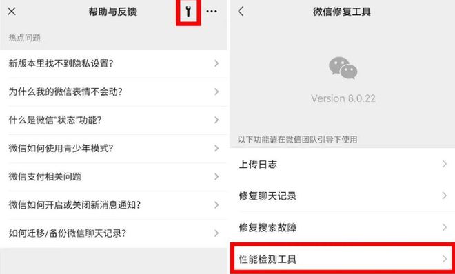 使用微信内置性能检测工具的方法也很简单,首先要确保是微信已经升级到安卓8.0.22版本。