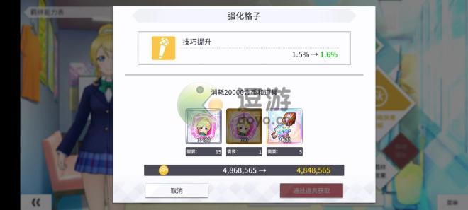 上图就可以看到当前面板以及羁绊等级带来的总加成效果,可以看到这个加成幅度是相当高的,而且每一个偶像都可以解锁能力板,不过消耗的材料很多,属于长时间的养成玩法,个人建议先培养果南,毕竟是当前版本的最强前排卡。