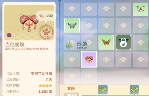 1、吉他蝴蝶出现位置在牧场、雪山以及家园附近,出没时间为全天