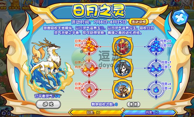 1.与BOSS战斗,胜利即可获得选择吸收灵气的机会,在有限的“剩余吸收次数”中将日/月灵分别稳定在50即可平衡灵气,此活动需要提前计算好,如何对日/月灵进行加减以实现在有限次数达到平衡,若无法在规定次数中达到平衡,可通过重置重新吸收,但在3分钟中不可进行挑战