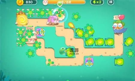 3、随着钱越来越多,可以把左侧摆满风扇,右边摆满炮塔,另外左右各自放一个泡泡塔,之后全部升满级就可以顺利过关了。