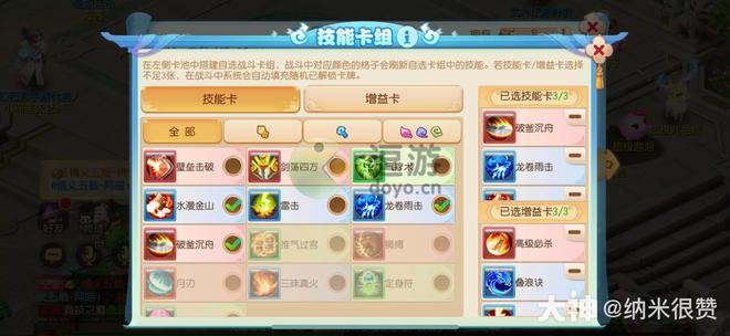 2.图二:技能卡带水漫金山、龙卷雨击、破釜沉舟(选群秒技能)