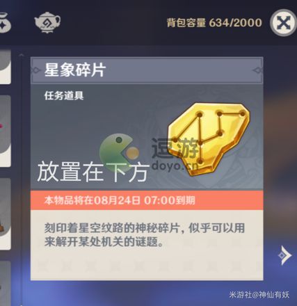 2.星象碎片:是莫娜秘境中可以通过拾取和精致宝箱中获取的任务道具,可以镶入【星辰影灯当中】