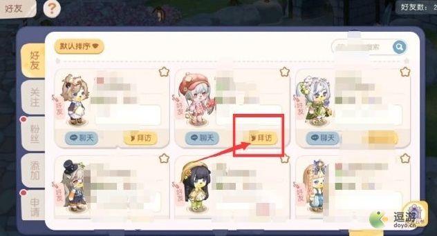 1、首先打开好友界面,点击好友下方的【拜访】,即可进入对方家中