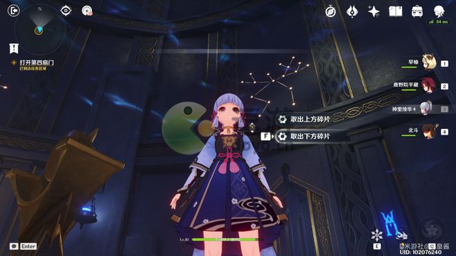 1.亘古的苍星第四扇门过法就是找一下下图这扇门,然后把这扇门下方的碎片取出来,放入第四扇门的上方就可以了。