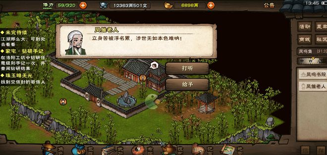12、去往凤鸣集-凤鸣书院,将信封给予凤雏老人,老人将内情说出