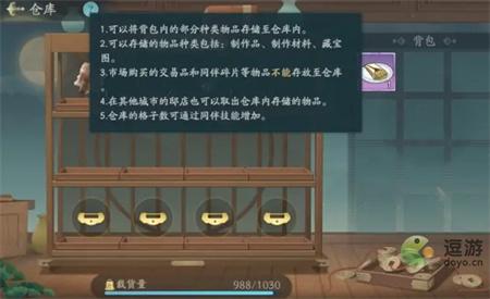 材料放置到仓库后背包中的重量就能被解放一部分出来。推荐往仓库放数量多的物品,同物品可叠加