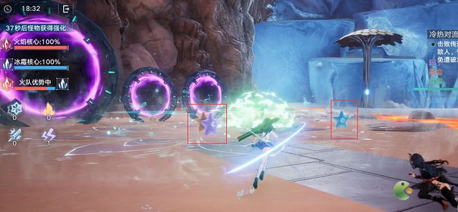 3、同时怪物每隔一段时间会进行强化,击败独角仙首领怪物会掉落不同元素属性的BUFF,注意根据自身的队伍属性进行捡取。