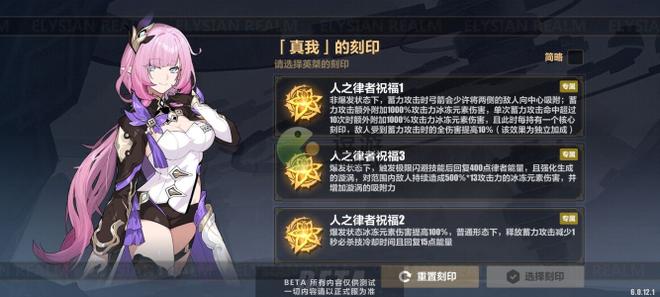 2.另外,往世乐土的爱莉,拿普通刻印是能+1级的,而且普通闪避能触发极限闪避,所以刻印可以拿刹那,相当契合。其他的繁星、戒律、螺旋、黄金等通用刻印都可以拿。