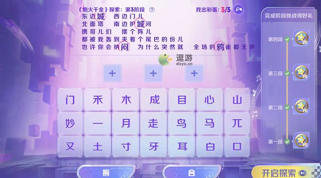 4、探索主打歌第四关:木又寸、木目心、妙(只有这个妙选了之后点“拆”其他都是“合”)