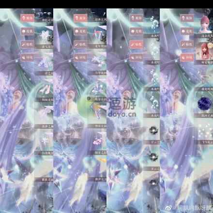 1.第一套:裙子是夜莺重构+微光原色,头冠是黑婚纱的,随心绘板部件是心绽和背后的极光,背景是3D影棚(暖暖套奖励),这个光照效果是带暖暖手持,用这个背景就可以,动作暖暖套心绽。