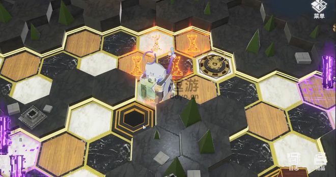 1.首先先把右上方的乱流之隙打了,然后走到棋子关卡很简单,把它每一格都踩到就可以。