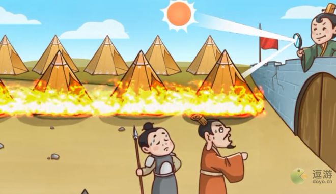 4、以上就是三国哈哈哈火烧连营的通关攻略,大家可以参考一下。这一关还是比较简单的,可以利用放大镜和太阳,让下面的帐篷都着火就可以了
