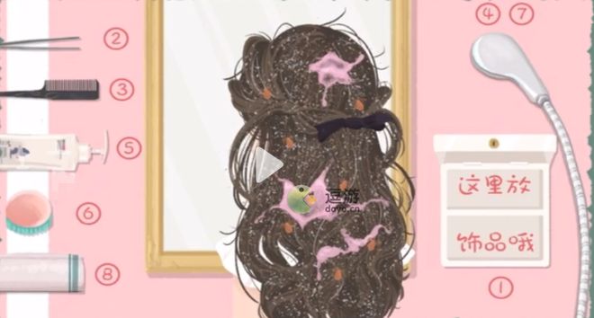 1、【托尼老师】关卡需要帮小姐姐洗头,首先将饰品放进盒子里,然后用镊子将头发上的杂物清理掉
