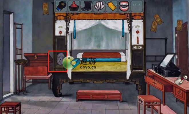 4、左边的门上贴着黄纸,枕头下面可以获得钥匙,打开右边的抽屉,抽屉里获得假牙