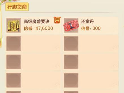 行脚商人,300还童丹,单价300。合计9W荣誉,一周一次。直接洗65级的宠物。洗到3-4技能,虽然是绑定的不能给予,但是可以直接上架拍卖。