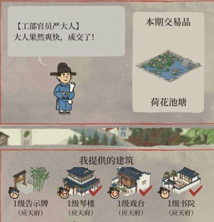 3、严大人的建筑越精美需要兑换的建筑也需要更精美或者需要数量增加。