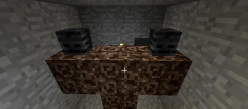 2、在想要召唤的位置旁边设置一个较远的矿道/在旁边使用基岩围出一个空间,这样可以避免等会凋零出生时被炸。