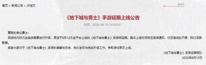 DNF手游原本定于2020年8月12日公测,800w勇士期待了5年的手游,今天又再次宣布延期上限,而且具体上限的时间还未知,这样一度期待的玩家们心灰意冷,那么dnf手游到底什么时候会上线呢?下面小编就为大家带来了dnf手游延期消息介绍,一起来看看吧。