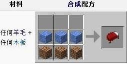 2、利用制作台,放入随意的3+羊毛和3+木板就可以合成床。