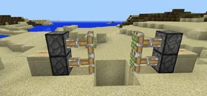 5、如法炮制,在坑的另一边也放上方块活塞。
