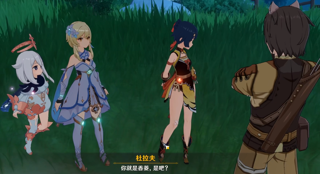 2、杜拉夫想让香菱做料理,香菱拒绝之后掉落就走,玩家需要追上香菱;