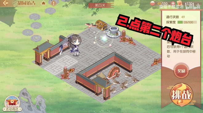 第一步:从左上方的大门进来,点燃门前的第一个火炮;