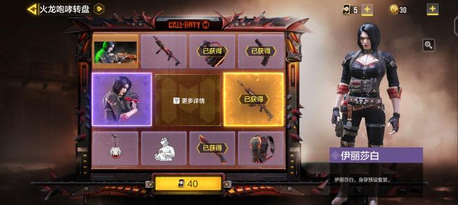 2、火龙咆哮转盘抽十次必定能获取所有物品,其中就包括了伊丽莎白;