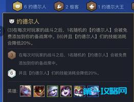 约德尔领主触发条件是:6约德尔人全部三星后,就会召唤出小法师,也就是约德尔领主了。S6有一个隐藏彩蛋,邪恶小法师—维迦,小法这张牌在牌库里是D不到的,只能通过6约德尔人的羁绊效果获得。当牌库里没有其他约德尔人棋子或者你的约德尔棋子全部三星时系统就会给你发小法 金铲铲约...