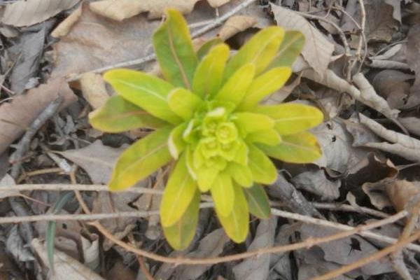 多年生草本,高30~50厘米。叶互生;叶片狭椭圆形或椭圆状披针形,长4~8厘米,宽1.5~2厘米,先端圆,基部楔形。杯状聚伞花序,排成复伞形。伞梗5枝,基部具卵状披针形或三角状长卵形的叶状苞片4~5枚;每枝再分2枝,分枝处有三角卵形或广卵形苞叶2枚,小枝先端具2片较小的苞叶及1个杯状聚伞花序。雌雄花同生于萼状杯形的总苞内,总苞先端4浅裂,腺体4个。蒴果光滑无毛。花期5~6月。