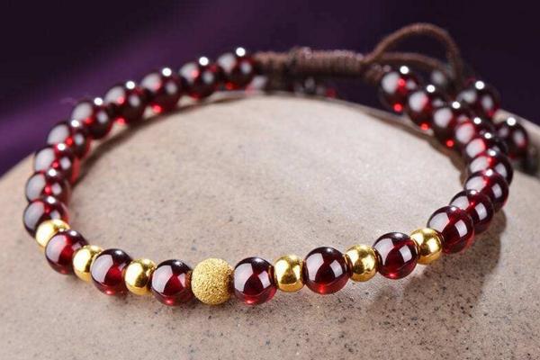 石榴石可以和黄金一起戴,可以组合成石榴石黄金手链。两颗石榴石中间穿一颗黄金转运珠。时尚美观。但需要注意的是大家最好不要戴在一起,因为石榴石的磁场释放会受到黄金干扰,释放的能量会衰减,而且石榴石的硬度比黄金硬度大很多,长期摩擦会对黄金有划伤。