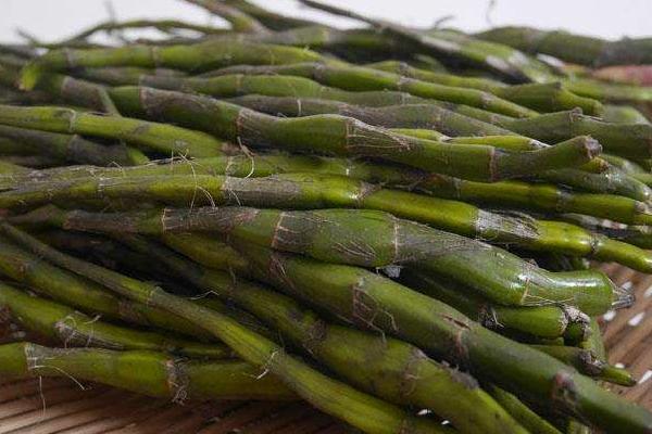 做法:取10-20克金钗石斛鲜品,洗净,直接食用。嫰枝口感鲜美,老枝富含石斛碱,入口微苦回甘,风味独特。功效:强阴益津、开胃健脾。
