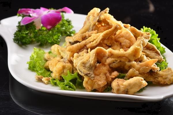 2、烹饪时,将原料放入油锅后周围会有大量的气泡并有轻微的爆炸声音。把拌好糊的蘑菇放到里面。放的时候要用筷子或者是手一个一个的放不要放一把那样就分不开了。火小的话不要放的太多了要看情况而定。在锅中炸定型后用筷子一个一个的分开。看颜色变的就捞出来,炸的时间如果过长会糊了,也会让蘑菇本身的营养流失。