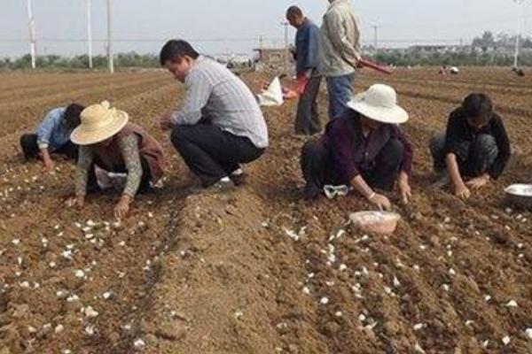 2、适时播种。作蒜头种植的,以九月上旬至十月上旬播种为宜;最迟不得超过十月中旬。作青蒜种植的,以八月中下旬播种最佳。播种采取穴植,每穴2-3瓣,间距17×20厘米,深度保持在0.02~0.3米,播种后覆盖一层草木灰或浇上一层泥沙浆。 亩播种量120-140公斤。要注意选择抗逆性较强的品种。
