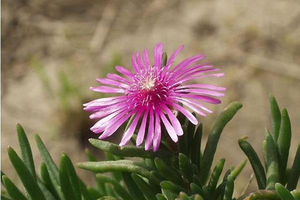 5、整形修剪。在松叶菊的生长初期,可以进行摘心,促进植株的生长。松叶菊开花后,要适当进行修剪,以保持株形的美观。