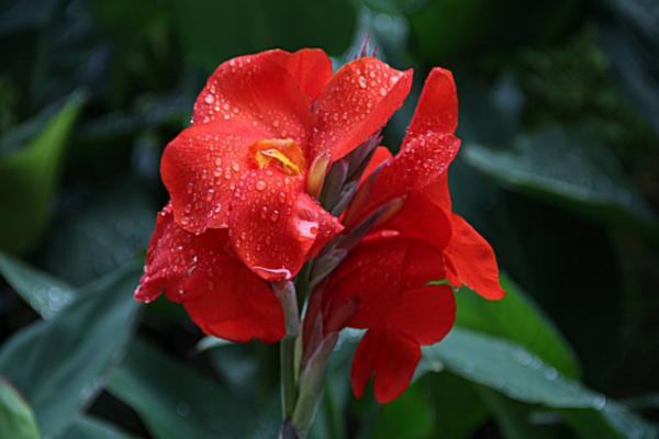 美人蕉的花期集中在夏季和秋季,北方6~10月份是美人蕉的花期,南方则全年都可以开花。美人蕉花朵的颜色十分繁多,通常我们看到的一般有黄色、红色、橙色、白色、还有一些夹带着斑点的大花。除了这些常见颜色,美人蕉也有粉色、紫色等品种