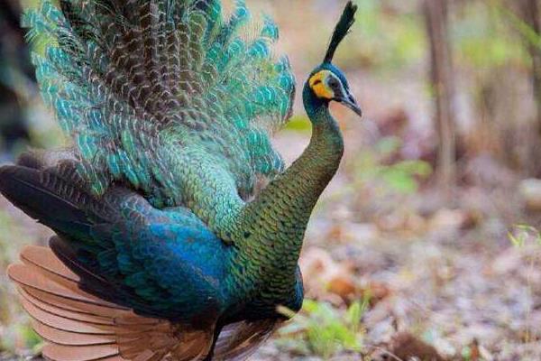 2、绿孔雀:绿孔雀就是爪哇孔雀,它们的冠羽为长条形,脸颊呈鲜黄色,雄性能开屏而闻名于世,其雀羽毛翠绿,下背闪耀紫铜色光泽,尾上覆羽十分发达,平时收拢在身后,伸展开来约有1米左右。它们的羽毛绚丽多彩,羽支细长,犹如金绿色丝绒,其末端还具有众多由紫、蓝、黄、红等色构成的大型眼状斑,开屏时反射着光彩,就像无数面小镜子,鲜艳夺目,观赏价值极佳。但绿孔雀是国家保护动物,不允许人工饲养。