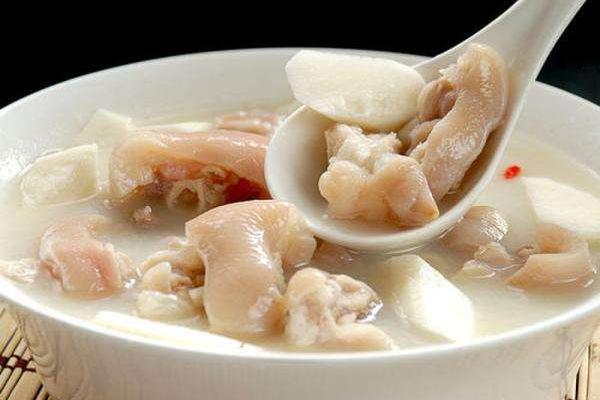 材料:猪手500克、黄豆100克、党参15克、黄芪15克、大枣10枚、通草20克、生姜片、盐适量。