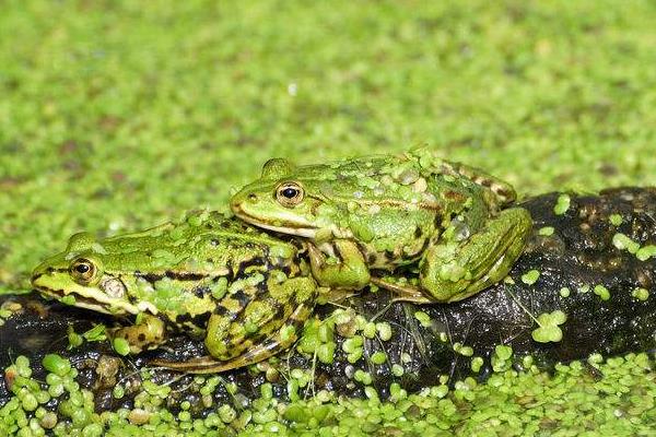 2、孵化:蛙受精卵在孵化期间的温度应保持在20℃~28℃,主要是自然孵化;也可采用塑料薄膜覆盖孵化法和无水孵化法。一般经过3~5天即可全部孵化蝌蚪。初生蝌蚪依赖于卵膜才安全生存,不要随便搅动池水,待所有青蛙产卵后,即将青蛙抓出池,以免干扰孵化及蝌蚪生存环境。卵孵化5天后可供给精饲料,如豆浆、蛋黄、水蚤及水中浮游生物,每天喂给2次,但投饵数量不宜太多,以免水质恶化,引起蝌蚪死亡。蝌蚪经1周饲养后即可移入饲养池饲养。