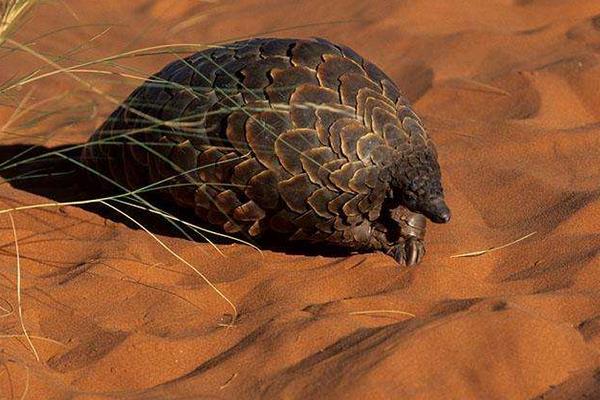 2、活动:穿山甲白天常藏在洞中,晚间出来活动,步行时,前脚的脚背着地,用爪背走路,能爬树,常用尾作绕附器官,视觉较弱,遇敌受惊时,卷成球形,以甲护头腹,故极易捕捉。