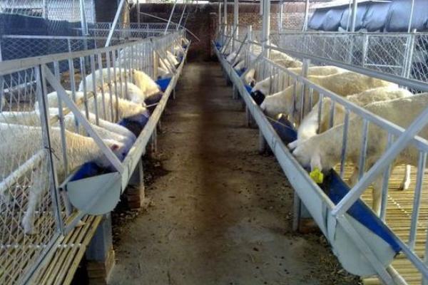 一、羊舍建造:羊舍可建成单坡敞棚式或全封闭式。单坡敞棚式一般后墙高度为1.8米,棚顶倾斜度为15度。全封闭式墙高2.3—2.5米,门宽1.5—2米。羊舍地面高出舍外地面20—30厘米,铺成斜坡以利排水。一般成年羊每只约占1.5—2平方米,怀孕母羊、哺乳羊、种公羊所占面积稍大些。舍内要保持干燥、通风,尽量做到冬暖夏凉,舍外设运动场,面积约为羊舍面积的2倍。
